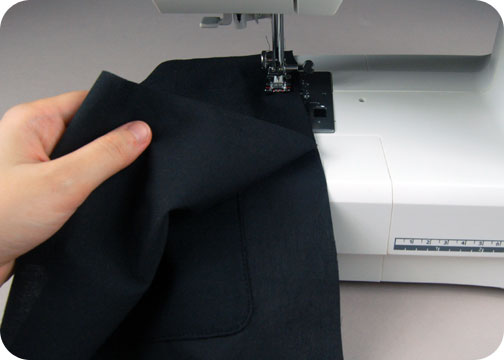 11. Pin your pocket to one of your lining pieces following the pattern guidelines, then edge stitch it in place along the sides and bottom. This should close up the opening in your pocket from the previous step while also affixing your pocket in place.