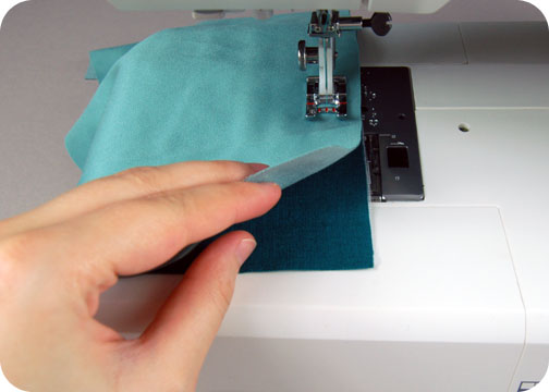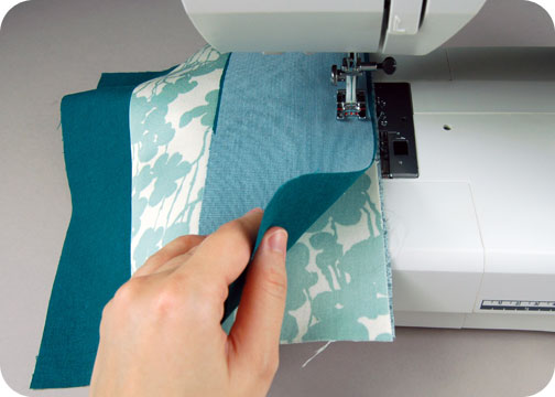 When you finish, press all the fabric away from your side strip piece, and you’ll be left with three layers on one side that forms your pocket!