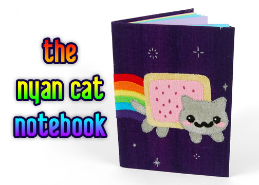 So are you all the type that loves Nyan Cat or just finds it annoying? I’m the former >w< Sure the song is an addictive and repetitive earworm, but it’s just so darn cute, I can’t help it! I actually made another notebook just like this for my boyfriend a long while back while he was going through a whole bunch of overtime so he’d have something to look forward to when he got home from all that work. The Mario Block Plush was actually one of them, and this was another 😀