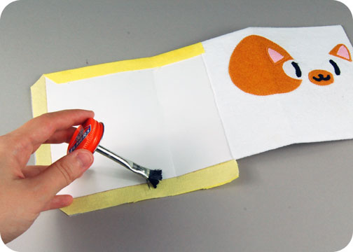 13. When your inner lining is nicely folded, you can then use it to cover up the blank area left in step 10. Center it over the fabric margins and glue it in place with some craft glue. You’ll want to avoid the rubber cement for this part, as the hold it provides won’t be quite strong enough for what you need.